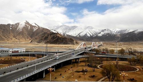 資料圖片:這是西藏第一座立交橋——拉薩柳梧大橋(3月30日攝)。新華社記者覺果攝