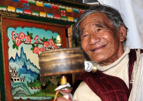 資料圖片:88歲的阿旺老人在拉薩市福利院安度晚年(1月14日攝)。50年前,阿旺是藏北草原上的農奴。新華社記者 覺果 攝