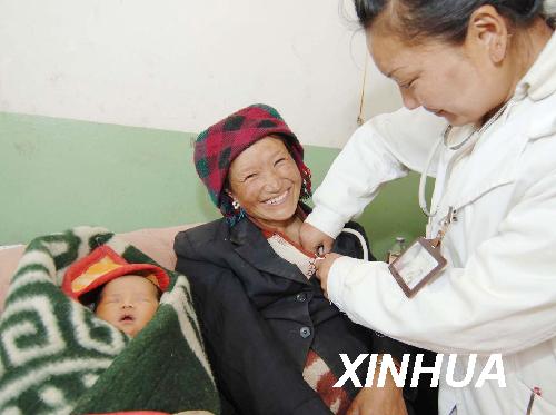 資料圖片:這是西藏拉薩市達孜縣的村民在醫院接受檢查(2007年4月9日攝)。新華社記者 普布扎西 攝
