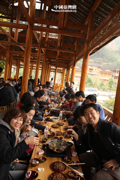 風(fēng)水橋上吃長(zhǎng)桌席,爽!(中國(guó)臺(tái)灣網(wǎng) 楊永青 攝)