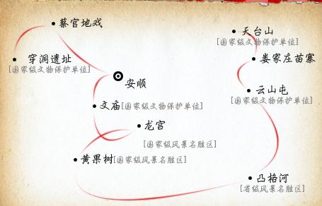 安順文化底蘊深厚,是貴州歷史上開發最早的區域,是貴州省歷史文化名城,具有穿洞文化、夜郎文化、牂牁文化、屯堡文化、三國文化、攀巖文化、三線文化等獨特的文化優勢。普定穿洞古人類文化遺址被譽為“亞洲文明之燈”;中國古代八大神秘文字之一的關嶺“紅崖天書”世稱“千古之謎”;明代軍事遺存屯堡村落和關嶺古生物化石群堪稱“世界唯一”;安順蠟染被譽為“東方第一染”;安順地戲被稱為“中國戲劇活化石”。安順是我黨老一輩無產階級革命家、全國“100位為新中國成立作出突出貢獻的英雄模范人物”王若飛同志的故鄉;也是中國國民黨中常委“谷氏三兄弟”谷正倫、谷正剛、谷正鼎的故地。