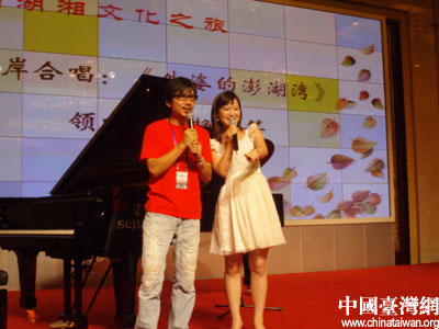宴會開始之后,兩岸學子還進行了精彩的才藝表演,其中來自臺灣的徐筠芷彈奏的《瀏陽河》得到了在場所有人的好評,彈到動情之處,聽眾都報以熱烈的掌聲叫“好”。由湖南師范大學的張靜弘和臺灣華新國際機構謝憲忠合唱的《外婆家的澎湖灣》將宴會推向了高潮,兩岸學子在歡樂融融的氣氛下度過了愉快的時光。(謝曉萍)