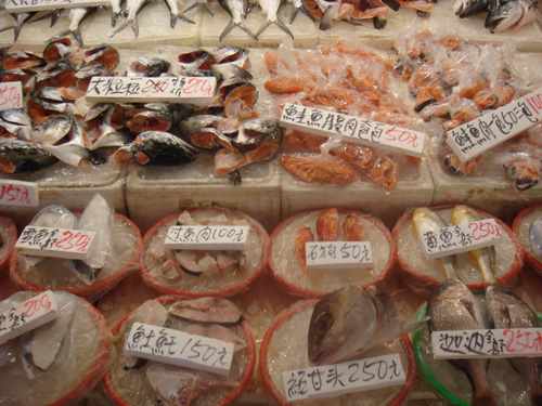 基隆碧沙漁港市場的新鮮海產品