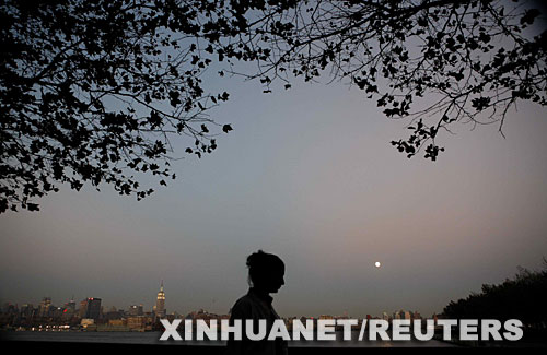 9月25日,在美國新澤西州霍博肯,一名女子從哈得孫河附近經過。 新華社/路透