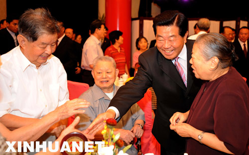 新華網(wǎng)北京9月13日電(記者 張景勇)13日晚,全國政協(xié)禮堂燈火輝煌,洋溢著喜慶和諧的氣氛,全國政協(xié)中秋聯(lián)誼晚會在這里舉行。中共中央政治局常委、全國政協(xié)主席賈慶林與各界人士400多人歡聚一堂,共慶中秋佳節(jié)。