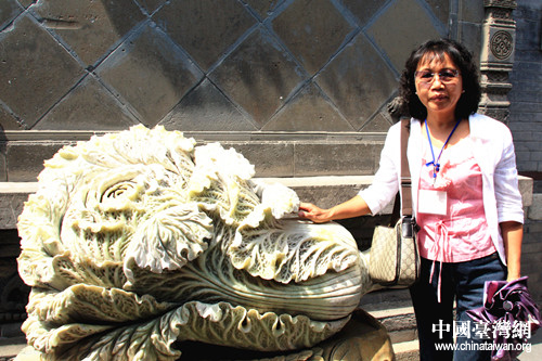 楊柳青石家大院是清代津門八大家之一的石元士的舊宅,這處晚清民居建筑群有“華北第一宅”之稱。自踏入院門起,大家的目光就被充滿了清末民初風(fēng)格的建筑物和藝術(shù)裝飾牢牢抓住。在院門處有一棵玉石白菜,經(jīng)講解員講解,臺灣民眾了解了大陸“白菜”通“百財”的風(fēng)俗,并紛紛與其合影留念。