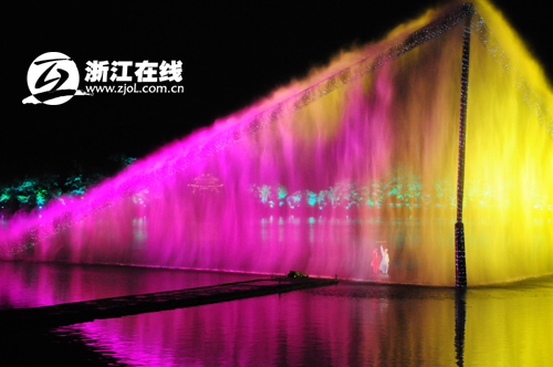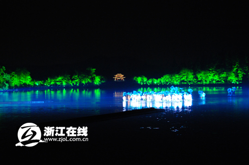 今天晚上,參加由浙江省委外宣辦、省旅游局和浙江在線新聞網(wǎng)站舉辦的“詩畫江南——全國知名網(wǎng)絡(luò)媒體浙江行”采訪團就現(xiàn)場感受了一番“印象西湖”的美麗。