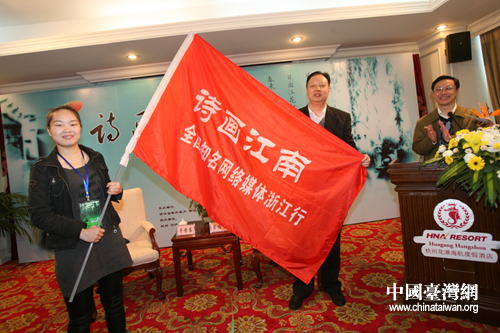“詩畫江南——全國知名網絡媒體浙江行”授旗儀式 (中國臺灣網 李典典 攝)
