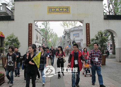 今天下午,來自全國40多家網絡媒體的記者們來到杭州南宋御街,采訪報道南宋御街迎接世博、參與世博的情況。
