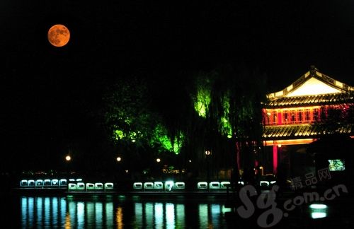 最誘人的夜幕降臨之后,一排氣勢恢弘的中式房間中散出溫暖燈光,使白天寂靜的猶如一幅水墨畫的西海一下子便有了一種跳躍的活力,朦朧中仿佛置身于幾百年前江南水鄉的燈紅酒綠之中。