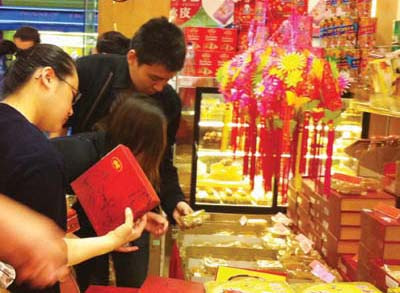 中秋將至,中國城里幾乎所有的大超市以及餅屋都為月餅設立了“專柜”,各式包裝精美的月餅被擺放在各超市最顯眼的位置。