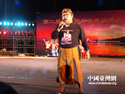 開幕儀式過后,云南民族村和臺灣少數民族代表團的各族兄弟姐妹獻上了異彩紛呈的歌舞表演。圖為聯歡晚會上臺灣歌手山原北貓現場獻唱。(于曉亮)