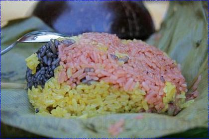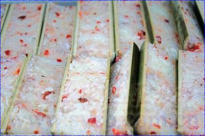 海南黎苗族傳統(tǒng)節(jié)日三月三,除了有豐富的文娛活動(dòng),期間還有全牛、魚(yú)茶、山蘭酒、竹筒飯、三色飯等三月三黎苗族傳統(tǒng)美食品嘗。 全牛宴:三月三品全牛 黎族以牛和銅鑼為財(cái)富象征,擁有的越多社會(huì)地位越高。“吃牛”為苗族的最大祭奠,歷時(shí)四至五天。此次海南黎苗族三月三,市民和游客可免費(fèi)品嘗到全牛。 鑒于牛越大,制作越難,此番三月三要烤制的牛約150斤左右。廚師介紹,烤全牛得提前24小時(shí)腌制,先將全牛清理干凈,在某些部位劃以數(shù)刀,再將配料如子然、油、鹽、蒜、姜、花生醬、白蘭地酒、醬油等佐料涂抹全身,放至第二天,加以烤制。烤制時(shí),要不斷翻轉(zhuǎn)牛身,不時(shí)給牛身噴上白蘭地酒及抹上油。如此翻轉(zhuǎn)烤制約5個(gè)多小時(shí),牛肉里外三層即可食用。據(jù)廚師長(zhǎng)介紹,烤熟后的牛肉的全身數(shù)牛腩是最美味的地方。 魚(yú)茶:聞名即聞香 魚(yú)茶并非普通意義上泡水喝的茶,而是一種腌制食品,其香味卻可與茶香媲美,用來(lái)“下飯”,胃口大開(kāi)。 魚(yú)茶是黎族苗族招待客人的特色菜肴,也是黎苗族人的風(fēng)味食品。傳說(shuō)很久以前的一次豐收盛宴后,為了不浪費(fèi)吃剩的東西,黎苗族同胞無(wú)意把米飯和生魚(yú)放在一壇子里蓋好,幾天后發(fā)現(xiàn)其味鮮美異常,“魚(yú)茶”因而流傳至今。 魚(yú)茶”分為“濕魚(yú)茶”和“干魚(yú)茶”兩種。它的制作比較復(fù)雜,將肥大的淡水活魚(yú)“拾掇”干凈,用刀將其切成塊狀,在魚(yú)塊上抹上鹽,放置一兩個(gè)小時(shí),后濾干鹽水,“干魚(yú)茶”則要把魚(yú)曬干。再將做好涼米飯摻入、酒糟或炒米攪勻,再裝進(jìn)干凈的壇子里密封起來(lái),如天氣炎熱,放至7-10天即可啟蓋食用;如天氣寒冷,則半個(gè)月或一個(gè)月方可食用。 山蘭酒:一醉方休 山蘭酒用黎話稱為“biang”,黎族同胞依山傍水而居,酒采用所居山區(qū)一種旱糯稻———山蘭稻谷釀制。制作時(shí),將山蘭米蒸熟揉散成粒,再用黎山特定植物和米粉制成的“球餅”碾至粉狀摻入其中,裝進(jìn)壇里。一日后取少量冷水沁入并封口。逢重大節(jié)假日或是迎接賓客,熱情的黎族人民便取出來(lái)招待,一同痛飲。 吃山蘭酒之人,可在口感中“舔”出山蘭酒的存放時(shí)間長(zhǎng)短。剛釀好的酒存放十天左右時(shí),口感甜而微辣、辣而不燥。初品之人容易貪杯或豪飲,殊不知這“后勁”的厲害所在。若放置時(shí)間久,開(kāi)壇時(shí)猶如香檳開(kāi)瓶時(shí),會(huì)發(fā)出響聲。據(jù)說(shuō),黎家婦女生育后,喝此酒用以滋補(bǔ)養(yǎng)身,去濕防病。埋入地下一年后酒呈黃褐色,數(shù)載則顯紅色甚至黑色,此時(shí)的山蘭酒更烹香。 “竹竿一吸勝壺觴”,黎族初民飲酒不用酒杯,飲時(shí)“以竹筒吸之”,竹筒較細(xì),插入酒釀的下端用竹片編成五個(gè)部分,以防吸進(jìn)酵母堵住管子。飲酒時(shí),“席間置biang一壇,插小竹管兩支”,兩旁賓客輪流吸飲。 苗家三色飯:三種植物,三種色澤 撥開(kāi)粽葉,紅、黃、黑三色躍入眼簾,品之香酥柔韌,帶有藥香甘甜。苗家五色飯現(xiàn)已改為三色飯,分別取色于新鮮植物紅葵、黃姜和三角楓,或是桑葉、紅藍(lán)藤葉和黃姜。 制作過(guò)程為先將三種植物用水浸泡兩小時(shí),黃姜最好搗爛再泡水,待泡出顏色后,再將山蘭米淘凈濾出水分,分成3等份,分別放入三種不同顏色的色液中,浸泡八小時(shí)染上顏色,將米撈出濾干水分。 然后把三種顏色的山蘭米分別上籠隔水蒸,約一個(gè)半小時(shí)至熟選取出,趁熱將椰漿分成3等份,加入3種飯中攪勻。 最后取粽葉包住,或是分3面捏成“金字塔”。 黎家竹筒飯:竹筒里糯米飄香 竹筒飯是海南黎族傳統(tǒng)美食,通常是黎家人出遠(yuǎn)門(mén),上山打獵或招待客人時(shí)才做的。 用山蘭稻沖的“香米”并配肉類為原料,放進(jìn)新鮮的粉竹或山竹鋸成的竹筒中,加適量的水,再用香蕉葉將竹筒口堵嚴(yán),炭火中綠竹烤焦即可。 “一家香飯熟,百家聞香”是對(duì)黎族地區(qū)的特產(chǎn)香糯米的贊譽(yù),現(xiàn)大多黎家做竹筒飯常伴以糯米。 竹筒飯有四種:野味飯、肉香飯、黑豆飯、黃肉飯。制法是將山蘭米洗后,浸泡半小時(shí),撈起,加精鹽、味精拌勻。將豬瘦肉切成肉片,用老抽、生抽、五香粉腌制,熱鍋過(guò)油,將肉片翻炒至熟,出鍋待涼后,切成肉粒待用。取新鮮青竹,每節(jié)鋸開(kāi)一端,洗凈晾干,用精豬油抹拭竹筒內(nèi)壁,將調(diào)好味的山蘭米同瘦肉粒控勻,分兩等份加進(jìn)兩節(jié)竹筒里,加入適量清水,后用干凈布條捆扎封堵竹筒口,放進(jìn)電烤爐中烤約半小時(shí)至熟。