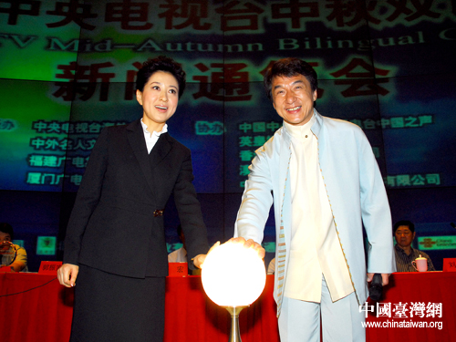 將于10月6日在廈門舉辦的2006年“海峽月 中華情”中央電視臺(tái)中秋雙語(yǔ)晚會(huì),昨天下午在北京中華世紀(jì)壇舉行新聞通氣會(huì)。中央電視臺(tái)、中共福建省委宣傳部、中共廈門市委、廈門市政府的相關(guān)領(lǐng)導(dǎo)出席了發(fā)布會(huì)。國(guó)際影星成龍也到場(chǎng)助陣,與晚會(huì)導(dǎo)演郭霽紅共同揭曉了本次晚會(huì)的吉祥物“團(tuán)圓兔”。
