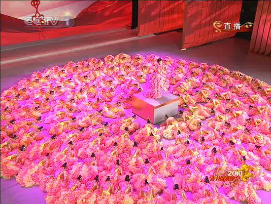 新浪娛樂訊 2月13日(除夕)晚20:00,2010年央視春節晚會通過中央電視臺面向全球直播,新浪娛樂同步視頻圖文直播。圖為花朵般的伴舞