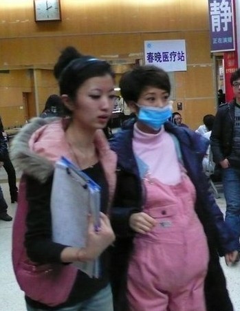 海青帶著口罩扮演孕婦 連走路都需要人攙扶
