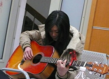 西單女孩獨自拿著吉他在角落里練習