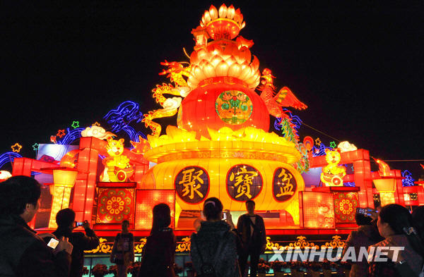 2月23日,市民在福州臺江步行街觀賞大型宮燈。新華社記者 張國俊 攝