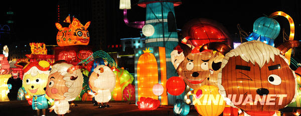 這是西寧市城西區(qū)的卡通動漫燈(2月26日攝)。 臨近元宵佳節(jié),西寧市各區(qū)、縣的彩燈展內(nèi)容豐富,造型各異。璀璨奪目的彩燈給高原古城帶來濃郁喜慶的節(jié)日氣氛。新華社記者侯德強(qiáng)攝 |