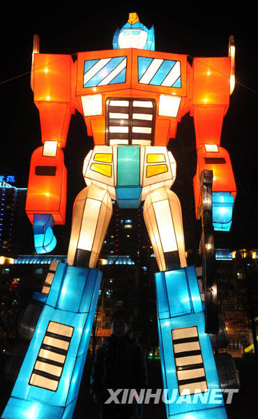這是西寧市新寧廣場的“變形金剛”燈(2月26日攝)。