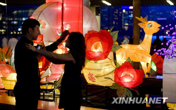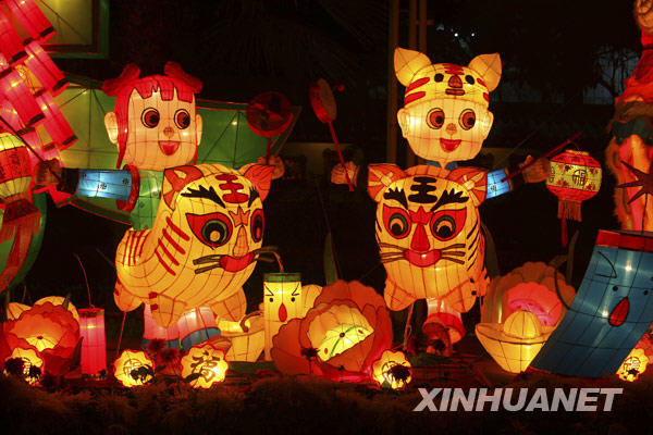 當(dāng)晚,2010臺北燈節(jié)進(jìn)行最后一次燈光調(diào)試,形態(tài)各異的花燈吸引了眾多市民前來賞燈。一年一度的臺北燈節(jié)將從2月26日至3月7日舉辦,陪伴市民歡度虎年元宵佳節(jié)。新華社發(fā)(吳景騰 攝)