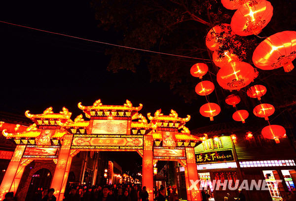2月23日,大型宮燈將福州古街——南后街裝扮得喜氣洋洋。